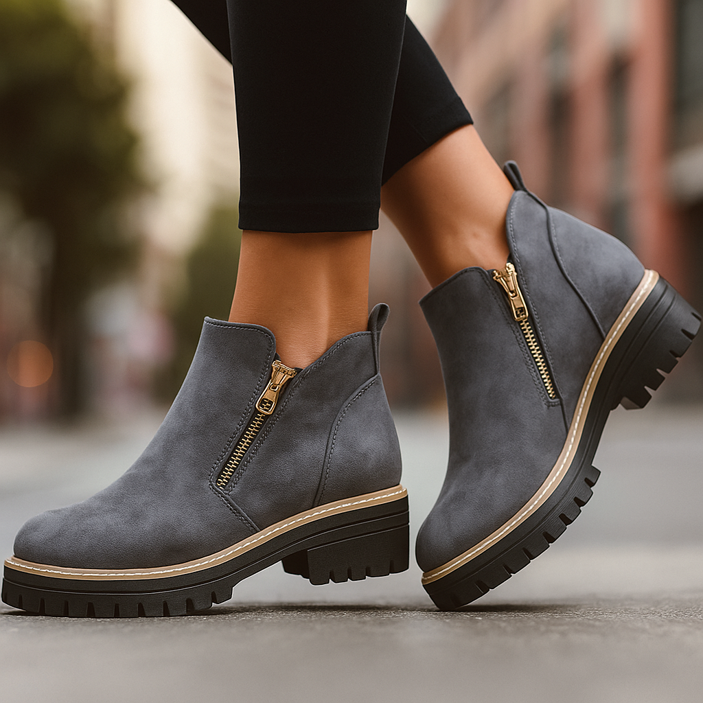 Built with a cushioned orthopedic insole and a shock-absorbing platform sole, these boots deliver steady support with a confident lift. The smooth side-zip closure and structured upper create a streamlined profile designed for daily wear.