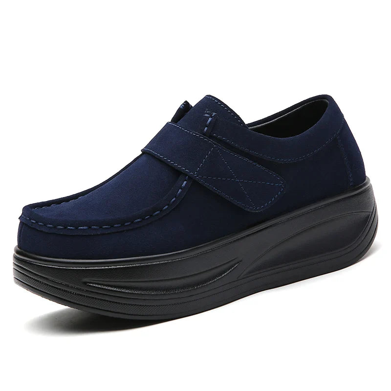 Built with a soft premium suede upper and a cushioned platform sole, these slip-on platforms focus on support and stability with a clean, everyday profile. The wide strap design keeps the fit secure while the elevated sole adds lift without compromising balance.
